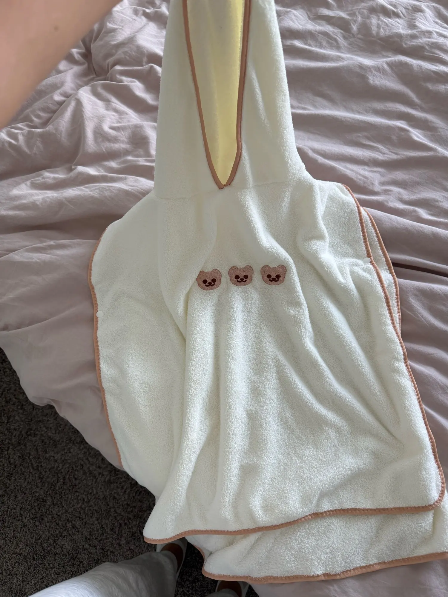 The embroidered bears bring subtle sweetness, while the poncho cut makes dressing after bath time easy and cozy.