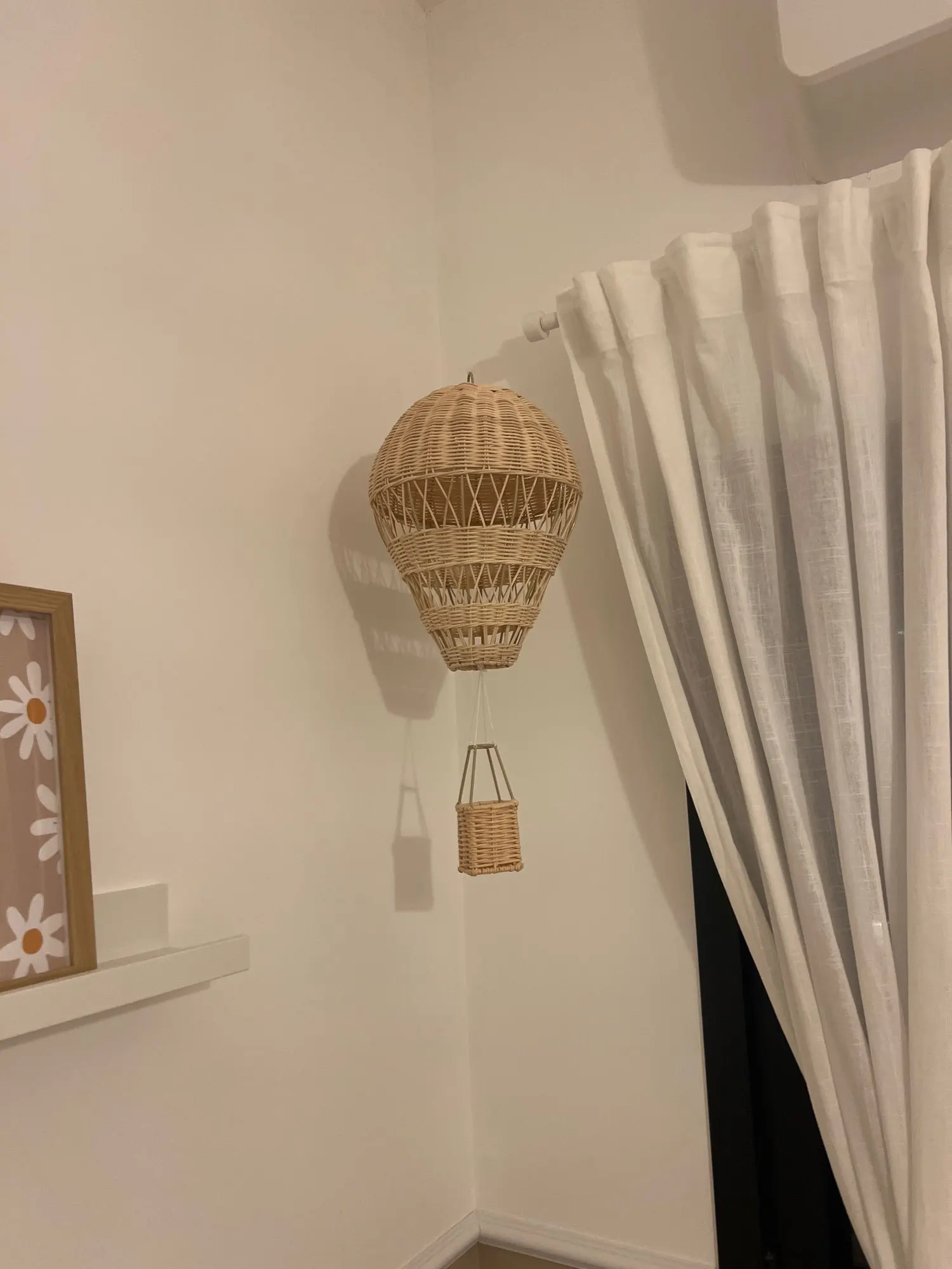Bring a touch of dreamy adventure to your baby’s room with this handcrafted hot air balloon wall decor. Designed in warm neutral tones, it adds a soft and whimsical charm to nurseries or playrooms. Perfect for minimalist and boho-inspired spaces.